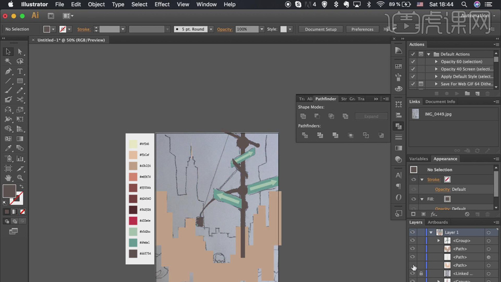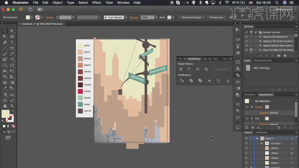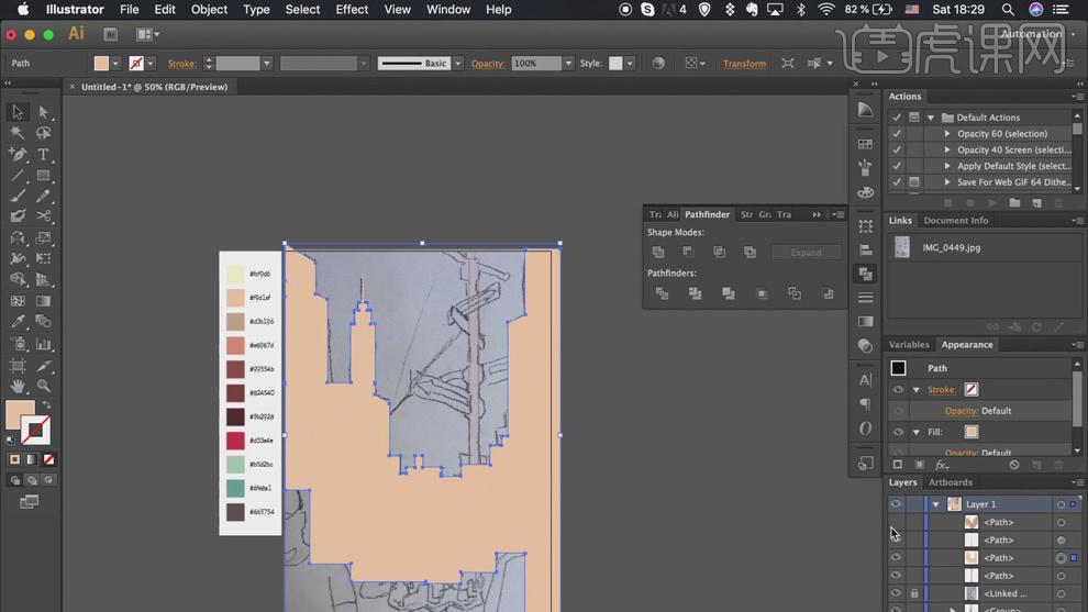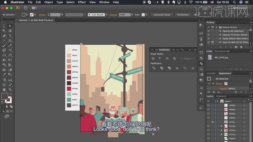 具体显示如图示。利用不异的方式,按照色彩填充思,【填充】合适的颜色。单击【径查找器】-【联集】。调整草图至画布大小。按照草图绘制标的目的标元素,【填充】合适的颜色,利用【矩形东西】结制草图建建图形,7、利用【间接选择东西】,利用不异的方式绘制残剩的人物以及联系关系元素,